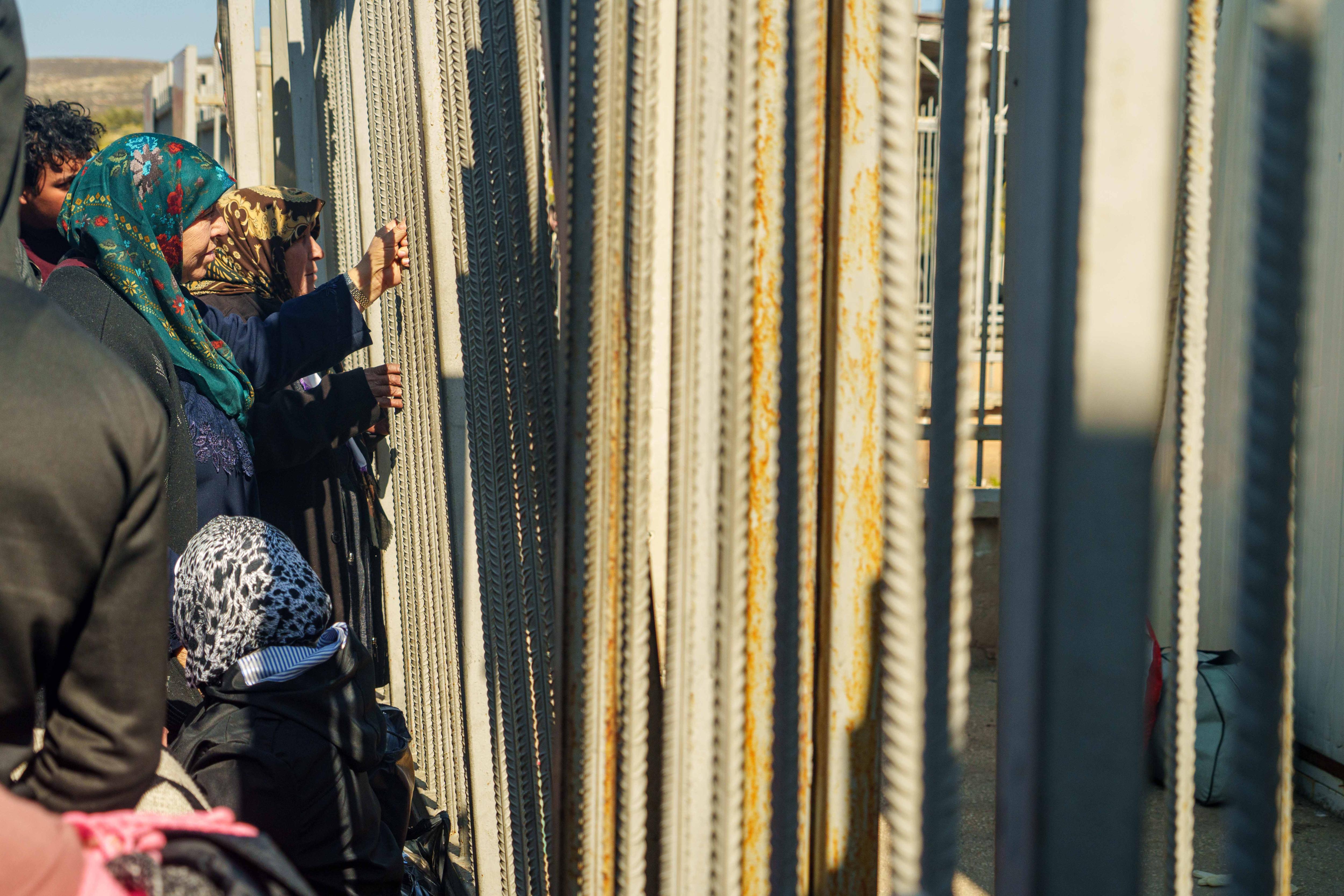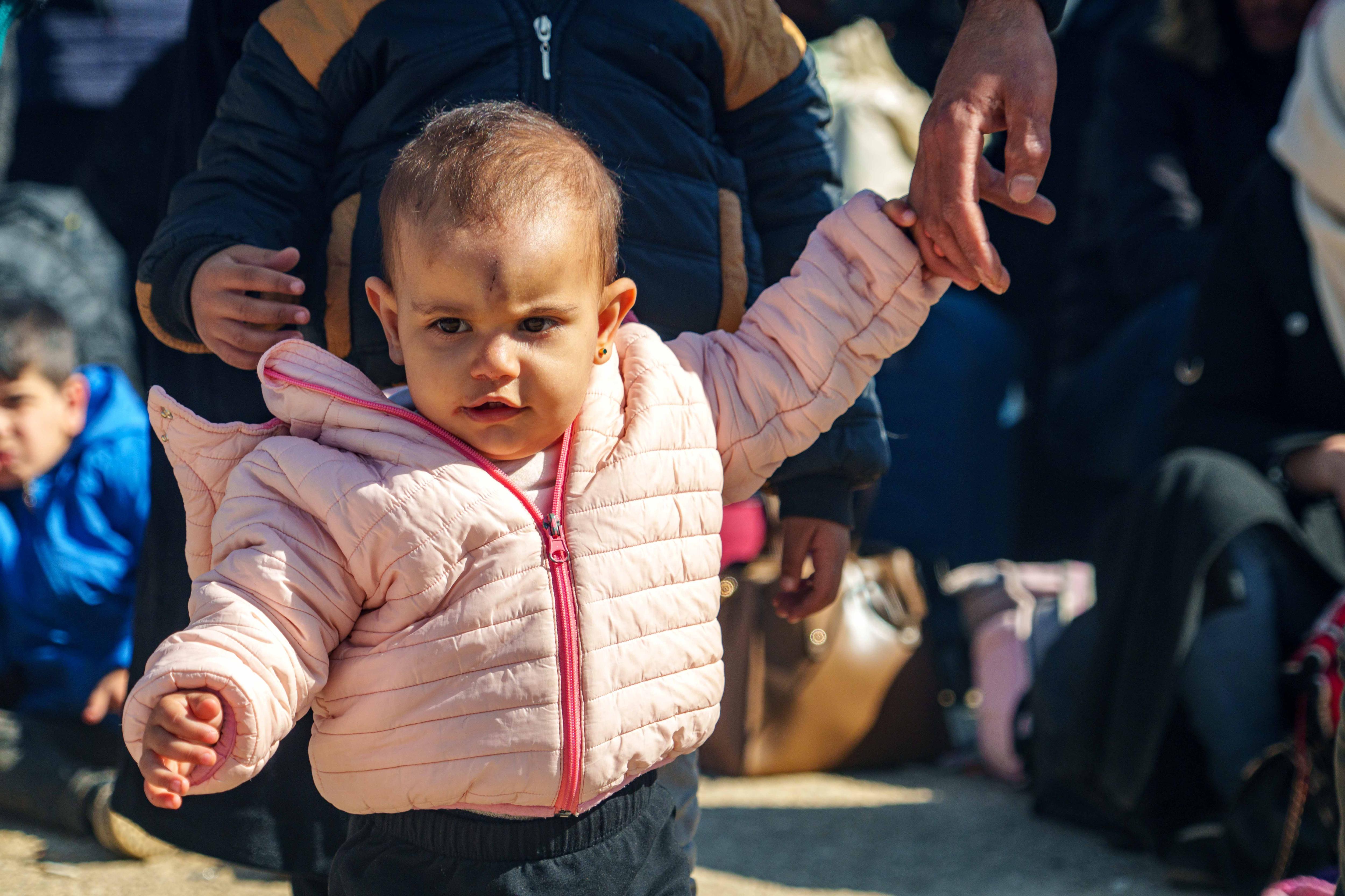 Watching on are dozens of other Syrian families, who also hope to cross back into the country's north-west.