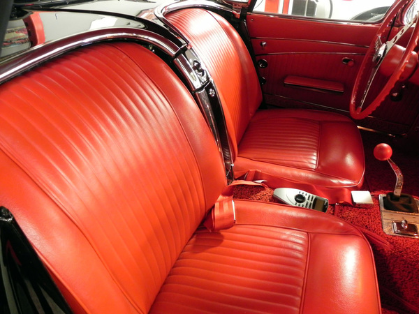 He retained the original 15-inch wheels and knockoff-style full wheel covers, but decided to add a splash of red to the exterior by using BFG Silvertown Red Line radial tires instead of the thin line white walls that came on the car. The entire restoration took two years.