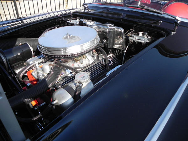 Larson wanted to keep the Corvette true to its origins, while making it more road-ready and dependable. The original 327 cubic inch V-8 engine was rebuilt to factory specifications, with only an Edelbrock aluminum intake manifold, a Rochester-style aftermarket carburetor and later model valve covers added. Factory cast iron exhaust manifolds were bolted to a new stainless steel exhaust system that uses factory-style mufflers.