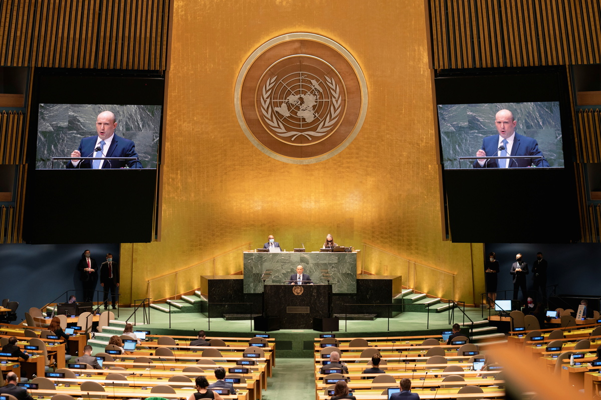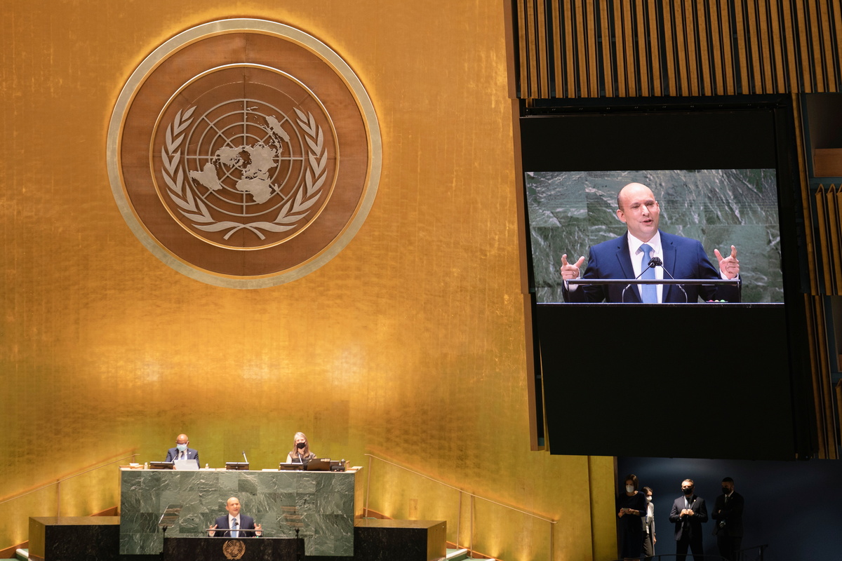 In his first speech to the United Nations General Assembly, Bennett said Iran sought to dominate the Middle East under a "nuclear umbrella" and urged a more concerted international effort to halt Iran's nuclear activities.