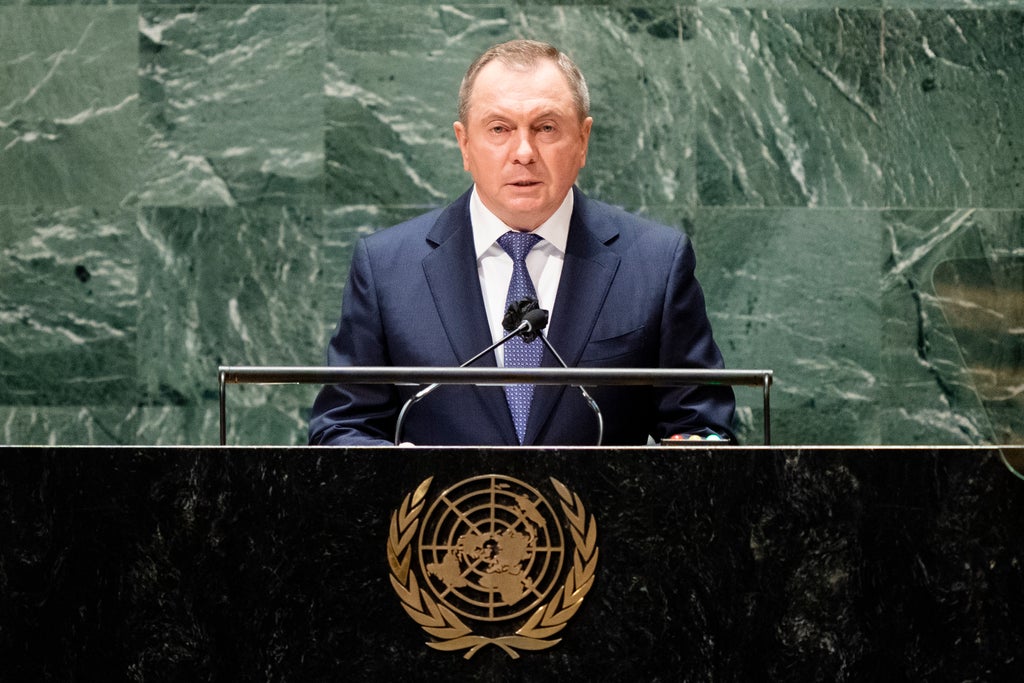 Makei did not acknowledge the government crackdown, instead telling the U.N. General Assembly’s high-level meeting that Belarus has been drawn, against its will, “into the vortex” of a geopolitical war.