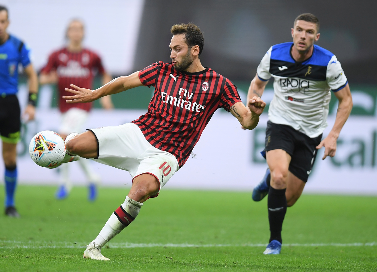 Atalanta coach Gian Piero Gasperini, who was serving a one-match touchline ban after being sent off during Tuesday's 1-0 win against Bologna, watched from the stands as his side fell behind to a moment of genius from Hakan Calhanoglu.