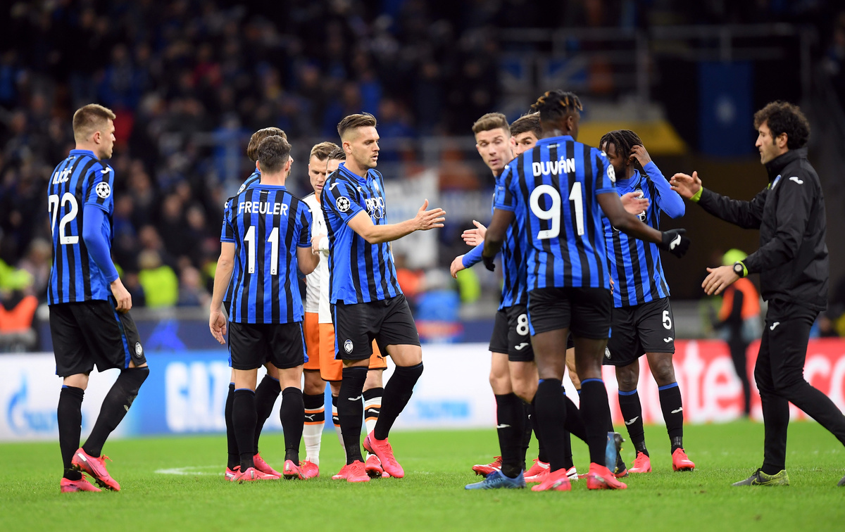 Soccer Football - Champions League - Round of 16 First Leg - Atalanta v Valencia - San Siro, Milan, Italy - February 19, 2020 Atalanta players celebrate after the match REUTERS/Daniele Mascolo