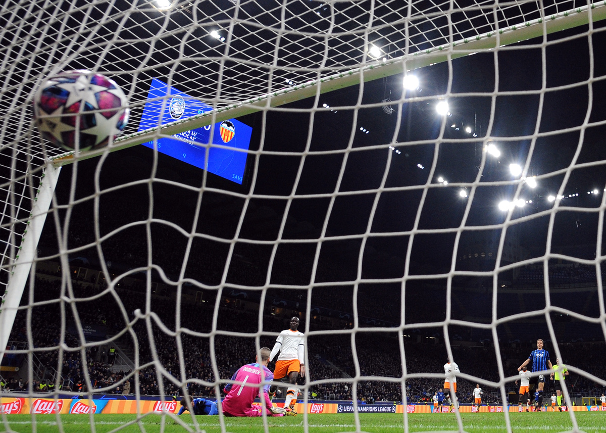 Soccer Football - Champions League - Round of 16 First Leg - Atalanta v Valencia - San Siro, Milan, Italy - February 19, 2020 Atalanta's Remo Freuler scores their third goal past Valencia's Jaume Domenech REUTERS/Daniele Mascolo