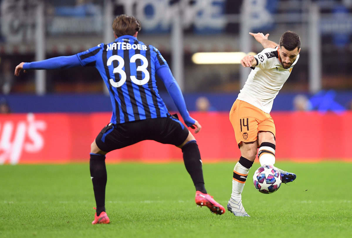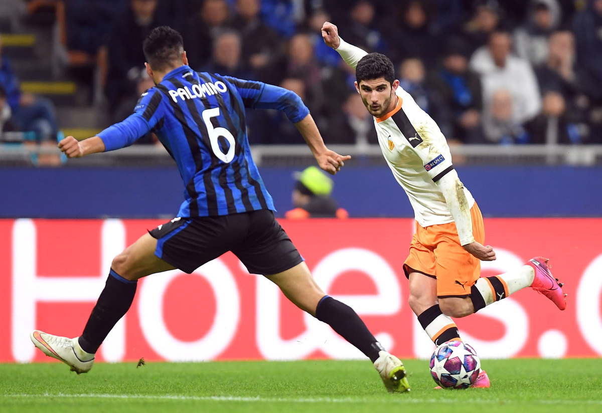 Soccer Football - Champions League - Round of 16 First Leg - Atalanta v Valencia - San Siro, Milan, Italy - February 19, 2020 Atalanta's Alejandro Gomez in action with Valencia's Goncalo Guedes REUTERS/Daniele Mascolo