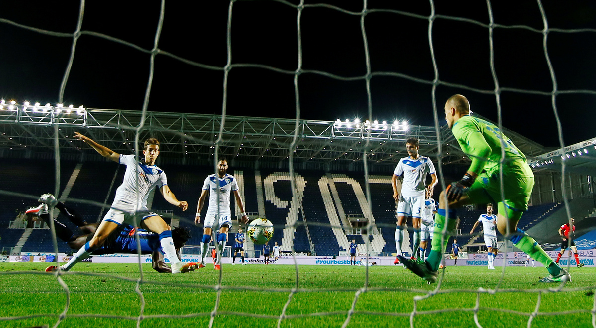 Brescia struck back six minutes later through Ernesto Torregrossa, but they were stunned by three superb goals from Marten de Roon, Malinovsky and a diving header by Duvan Zapata to go in at the break 4-1 down.