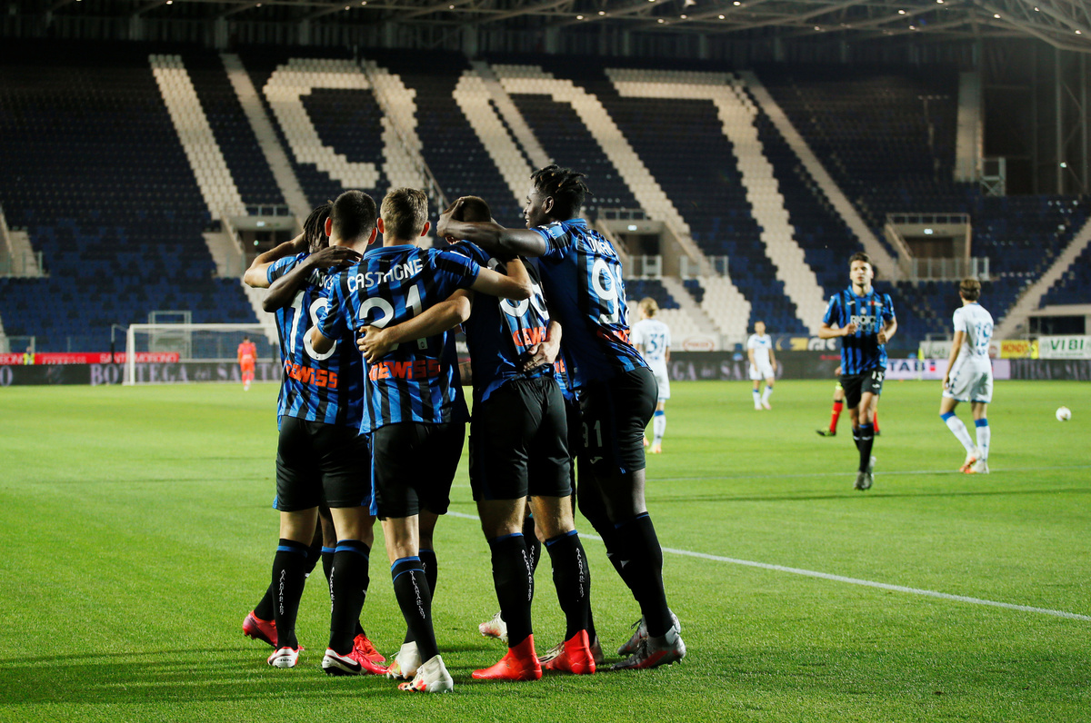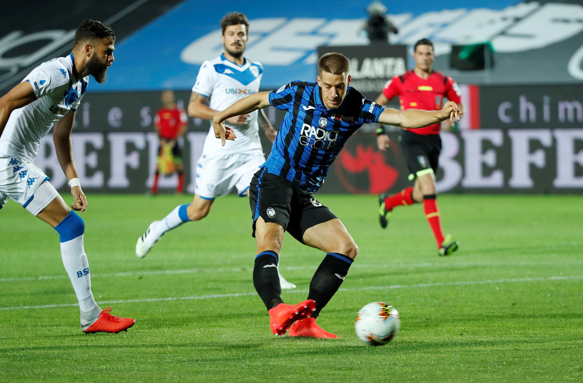 Soccer Football - Serie A - Atalanta v Brescia - Stadio Atleti Azzurri, Bergamo, Italy - July 14, 2020 Atalanta's Duvan Zapata scores their fourth goal, as play resumes behind closed doors following the outbreak of the coronavirus disease (COVID-19) REUTERS/Alessandro GarofaloSoccer Football - Serie A - Atalanta v Brescia - Stadio Atleti Azzurri, Bergamo, Italy - July 14, 2020 Atalanta's Mario Pasalic celebrates scoring their first goal with teammates, as play resumes behind closed doors following the outbreak of the coronavirus disease (COVID-19) REUTERS/Alessandro GarofaloSoccer Football - Serie A - Atalanta v Brescia - Stadio Atleti Azzurri, Bergamo, Italy - July 14, 2020 Atalanta's Mario Pasalic scores their first goal, as play resumes behind closed doors following the outbreak of the coronavirus disease (COVID-19) REUTERS/Alessandro Garofalo