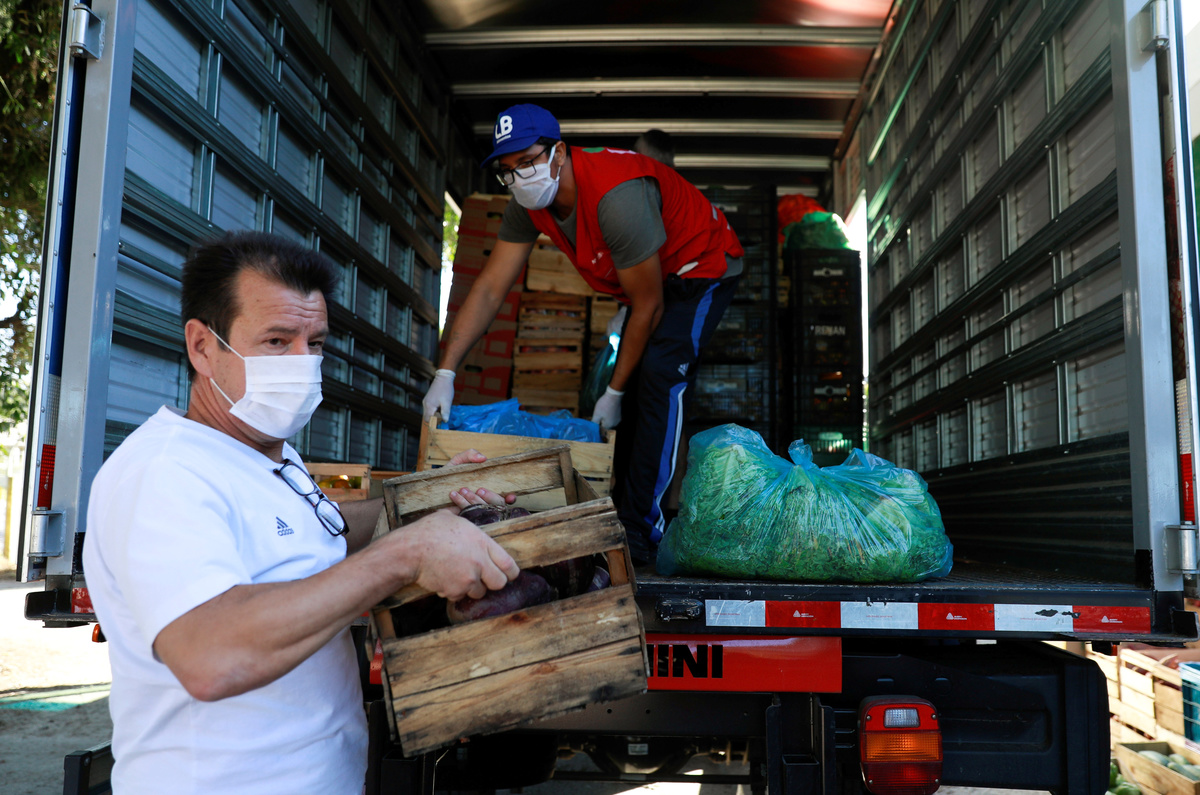 Argentine midfielder Andres D’Alessandro, who plays for Porto Alegre side Internacional, was with him on Tuesday as they loaded sacks of produce into cars and trucks.