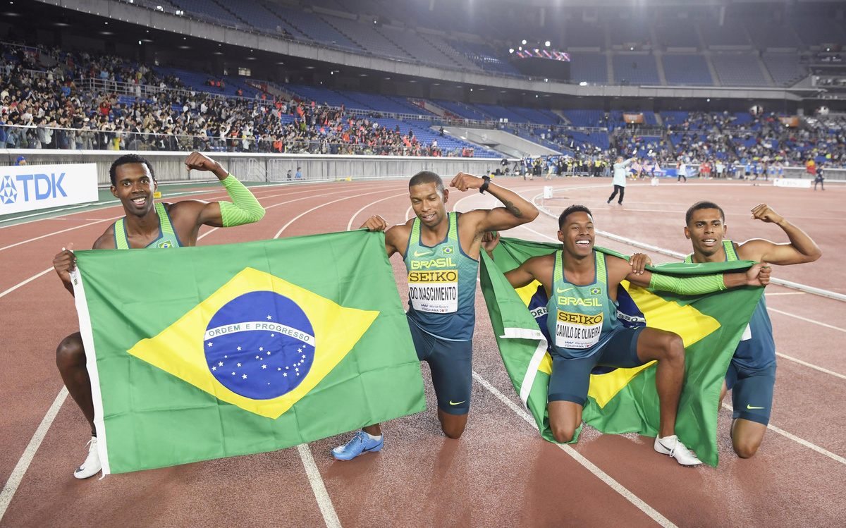(Reuters) - Paulo Andre Camilo de Oliveira powered Brazil to victory in the men's 4x100m event at the IAAF World Relays in Yokohama, Japan, on Sunday as they finished ahead of a strong United States quartet and world champions Britain.