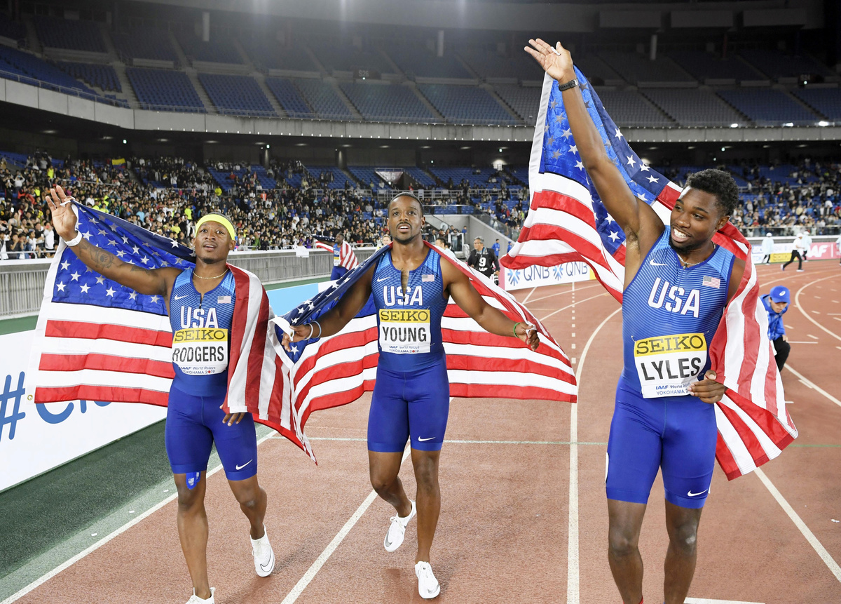 The U.S. men went slower in the 4x200m final than they did in the heats earlier on Sunday, but still proved too good for their rivals to finish first in one minute and 20.12 seconds on a cold evening at the Yokohama International Stadium.