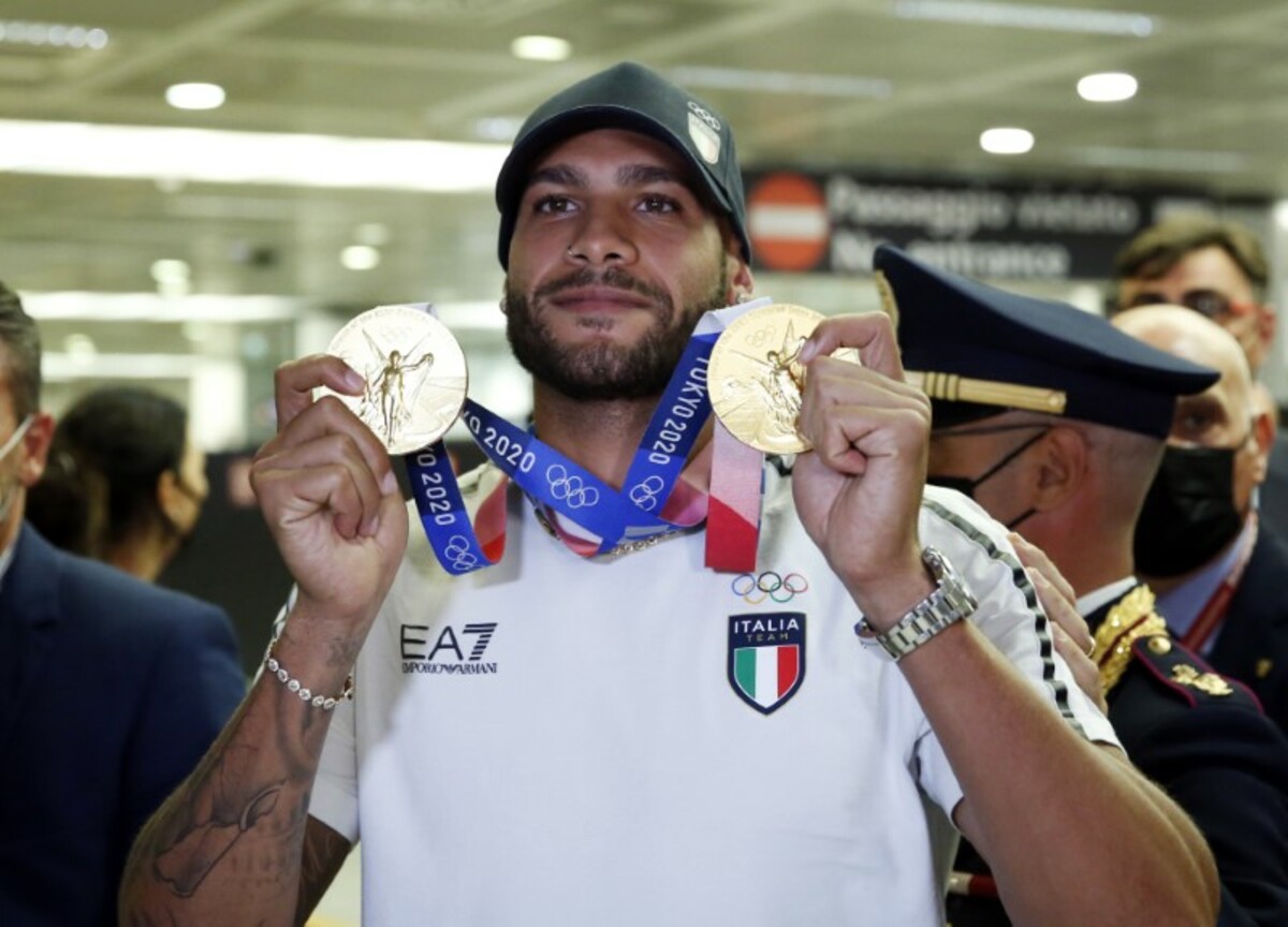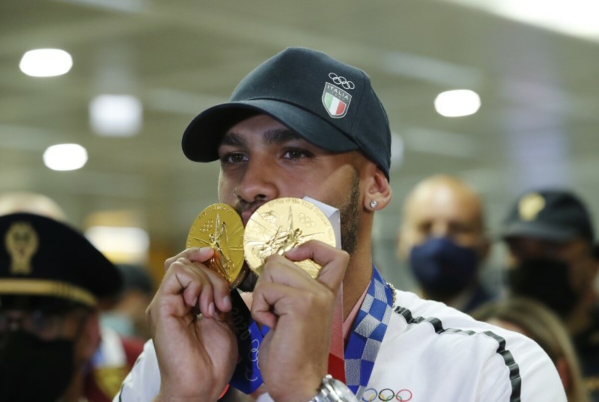 Jacobs became the first Italian to win 100 metres gold, setting a European record time of 9.80 seconds in the final, and was part of his country’s triumphant 4x100 metres relay team.