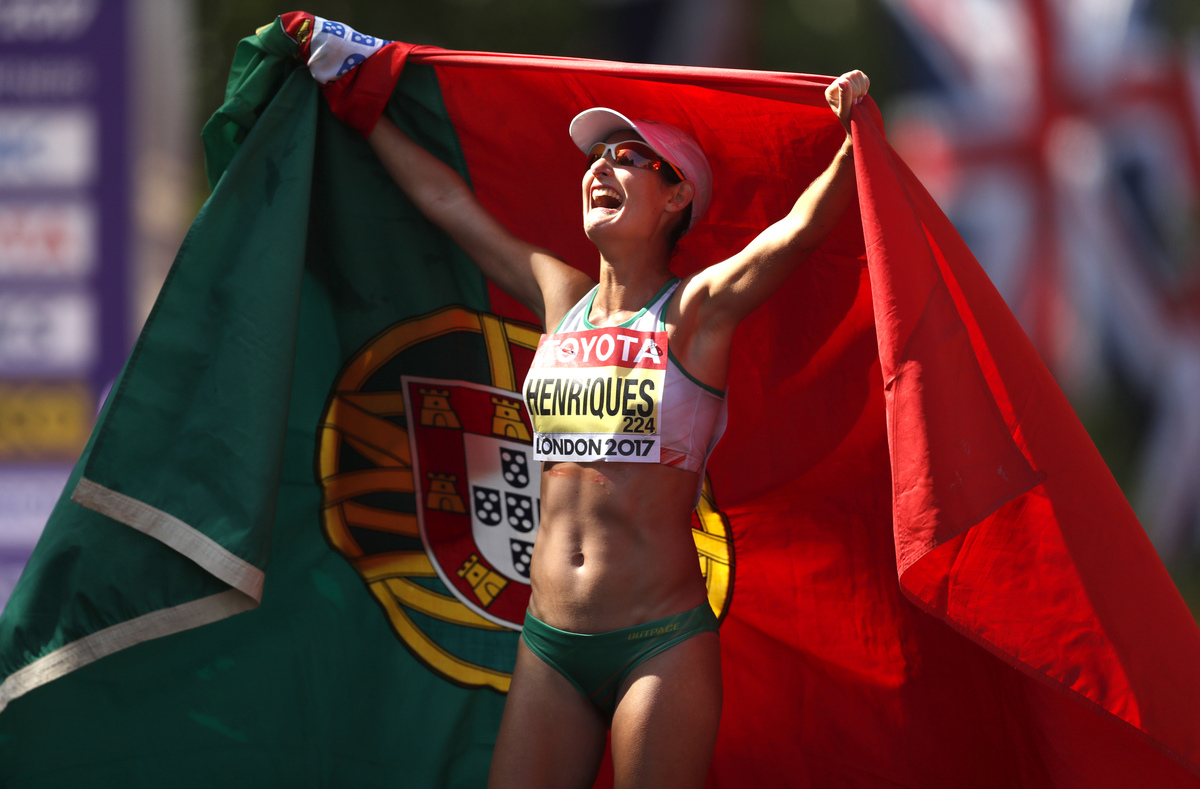 Henriques dominated the race from the start to win what is her first major global title, and the first race walking title to go to a Portuguese woman.