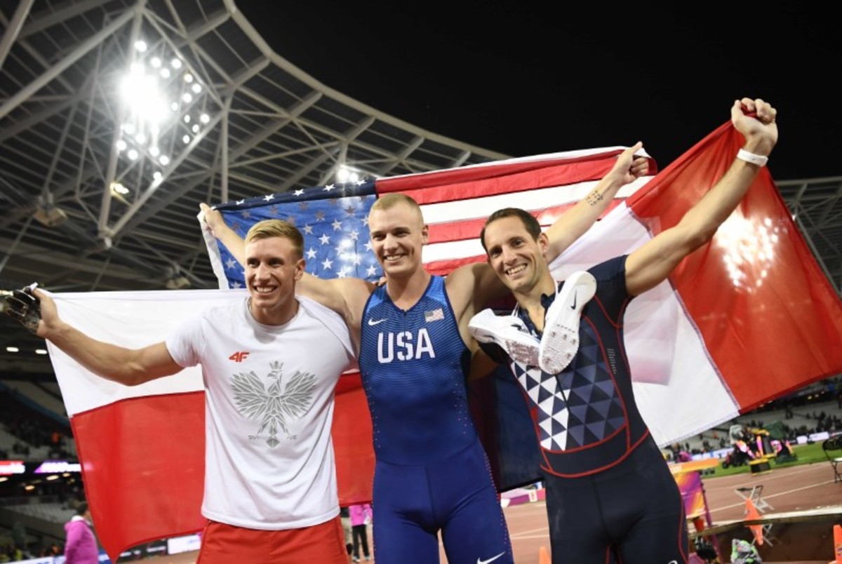 Kendricks, a first lieutenant in the U.S. Army reserve, cleared 5.95 metres while Poland's Piotr Lisek took the silver and Lavillenie had to be content with a fourth world bronze despite producing his best leap of the season.