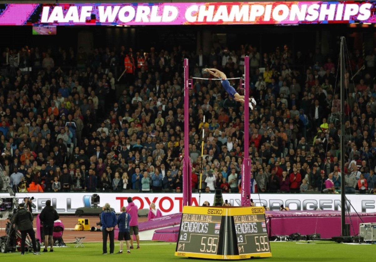 LONDON (Reuters) - American Sam Kendricks capped his memorable, unbeaten season by wining the pole vault at the World Championships on Tuesday as the title once again eluded world record holder and former Olympic champion Renaud Lavillenie.