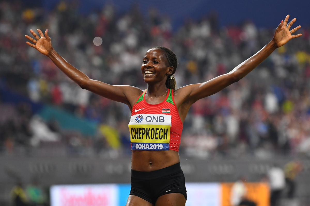 The 29-year-old Chepkoech, who also holds the world record in the 3,000 metres steeplechase, battled windy conditions with assistance from her pacemaker Luuk Maas.