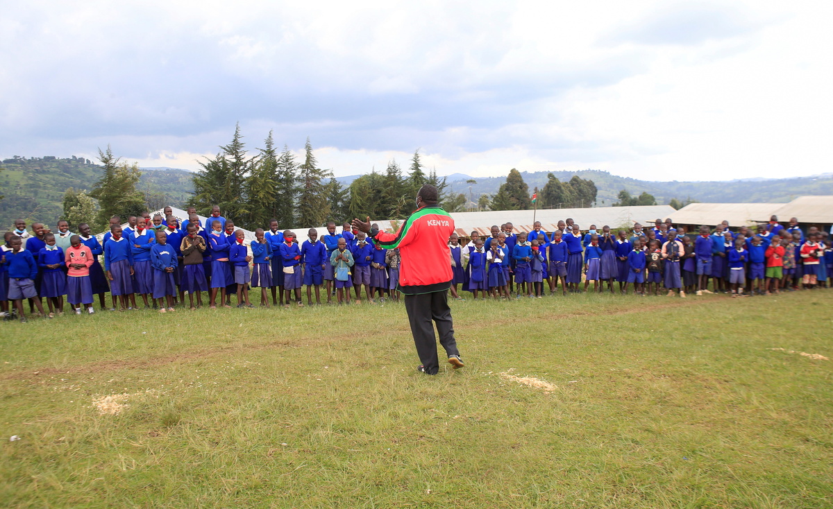 On a cloudy day at a school in Elgeyo Marakwet county in Kenya's west, children jump over wooden desks serving as hurdles placed on the course of a steeplechase race, as their classmates cheer excitedly from the side.