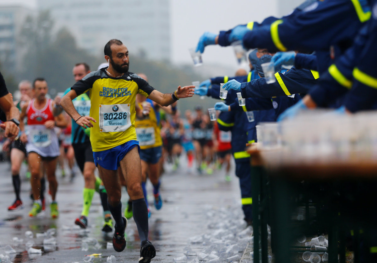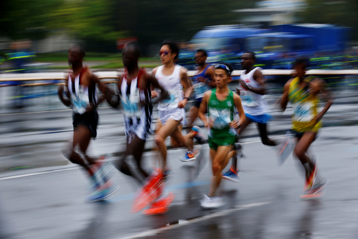 The rainy conditions soon took their toll, however, and the elite men had drifted outside world record pace by the 12km mark.