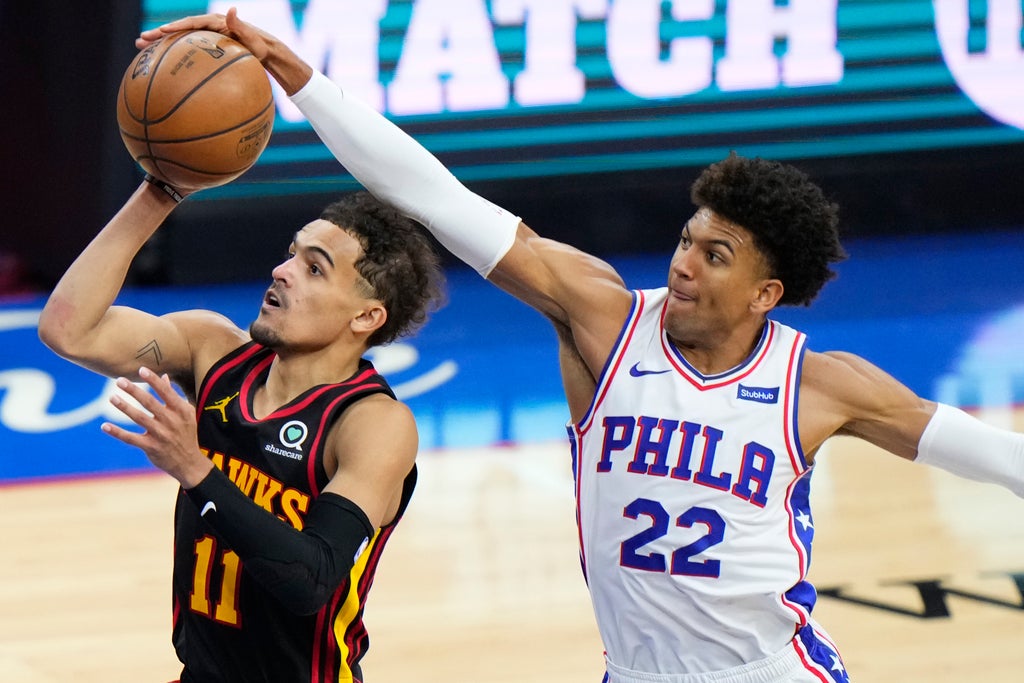 Kevin Huerter top-scored for Atlanta with 27 points and closed out the game by making three free throws, as a packed Wells Fargo Centre in Philadelphia briefly fell silent.
