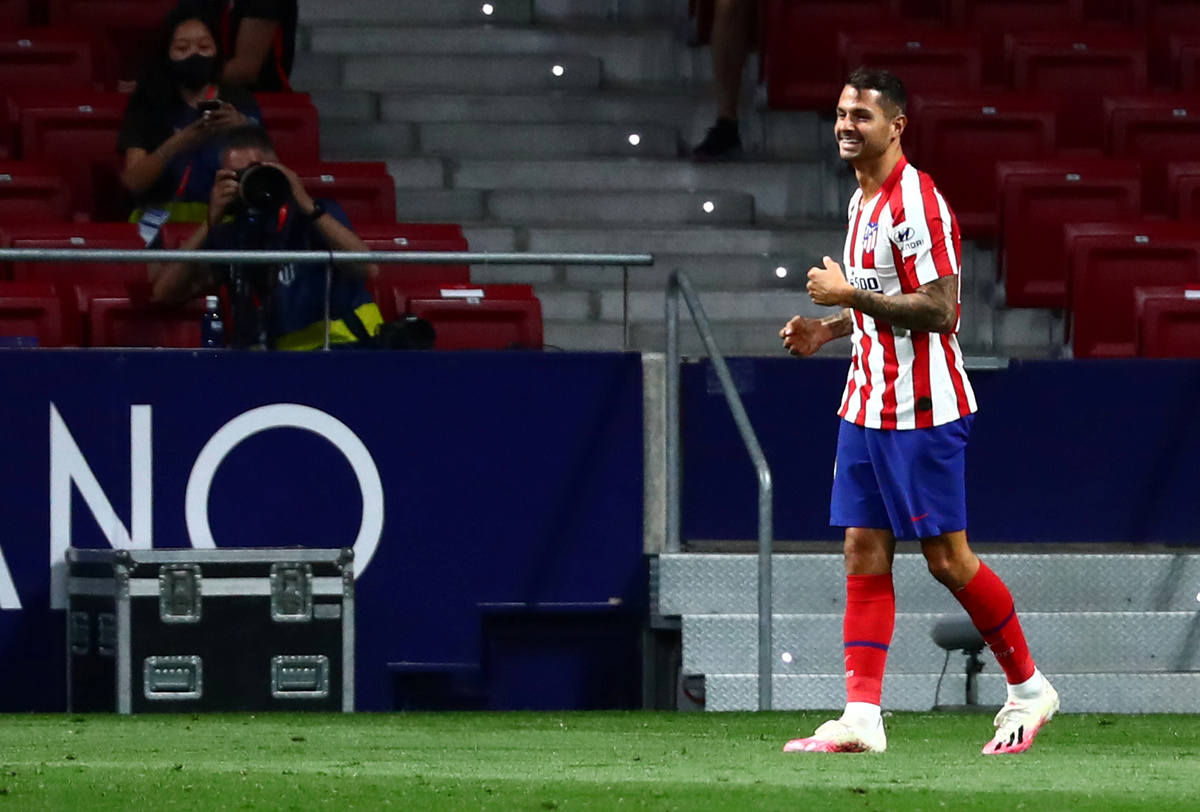 Soccer Football - La Liga Santander - Atletico Madrid v Real Valladolid - Wanda Metropolitano, Madrid, Spain - June 20, 2020 Atletico Madrid's Vitolo celebrates scoring their first goal, as play resumes behind closed doors following the outbreak of the coronavirus disease (COVID-19) REUTERS/Sergio Perez