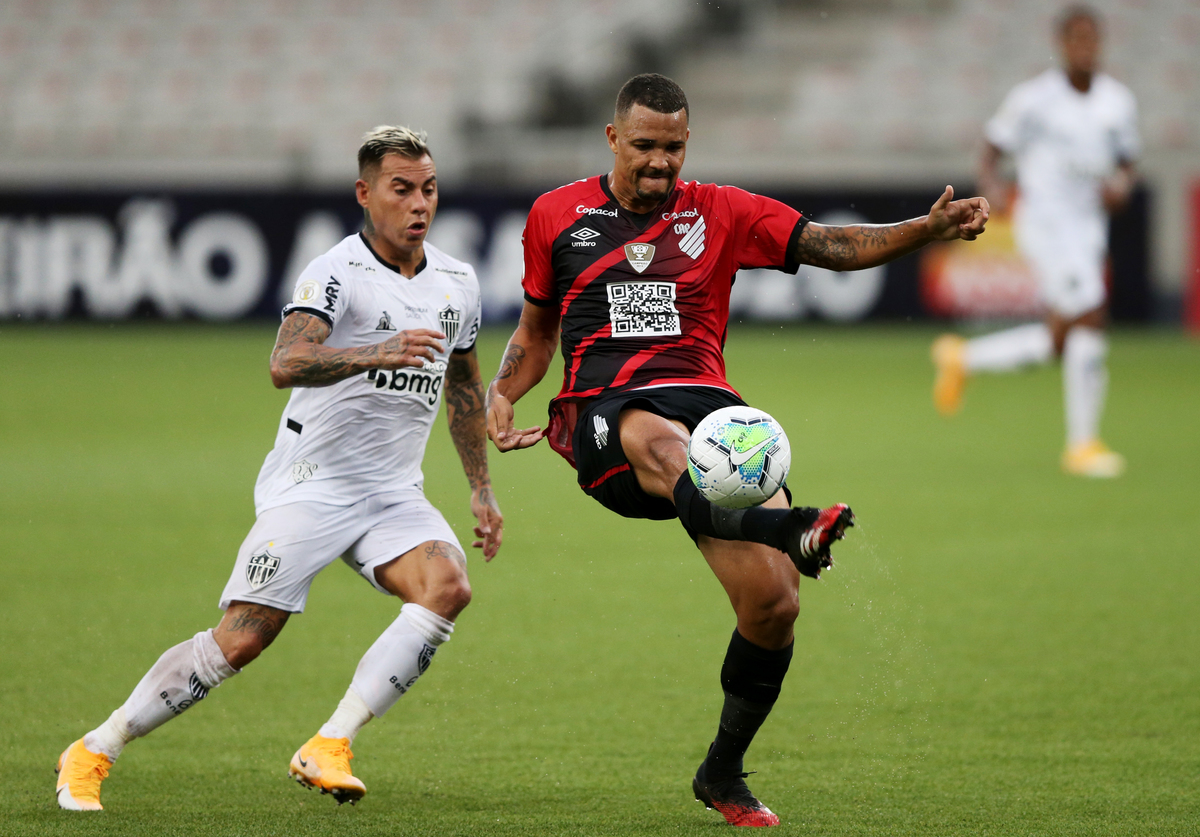 Soccer Football - Brasileiro Championship - Athletico Paranaense v Atletico Mineiro - Arena da Baixada, Curitiba, Brazil - December 12, 2020 Athletico Paranaense's Renato Kayzer takes a free-kick REUTERS/Rodolfo BuhrerSoccer Football - Brasileiro Championship - Athletico Paranaense v Atletico Mineiro - Arena da Baixada, Curitiba, Brazil - December 12, 2020 Athletico Paranaense's Richard in action REUTERS/Rodolfo BuhrerSoccer Football - Brasileiro Championship - Athletico Paranaense v Atletico Mineiro - Arena da Baixada, Curitiba, Brazil - December 12, 2020 Athletico Paranaense's Jose Ivaldo in action with Atletico Mineiro's Eduardo Vargas REUTERS/Rodolfo Buhrer