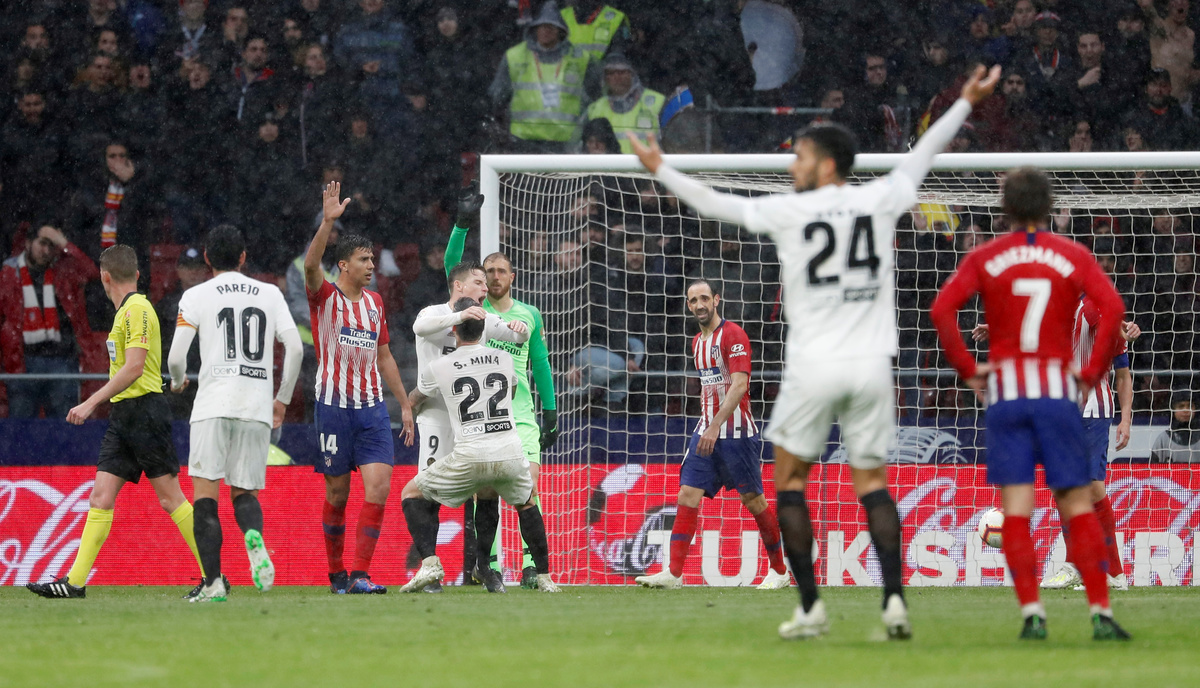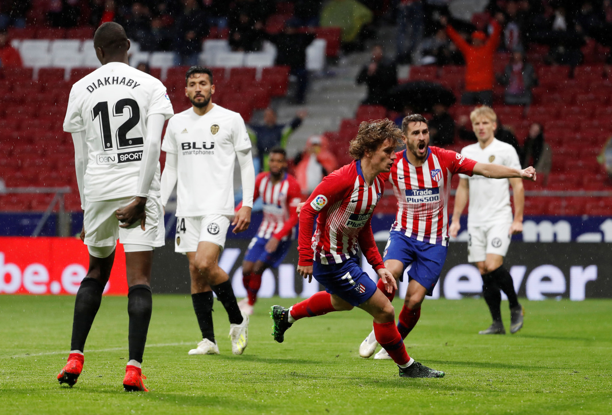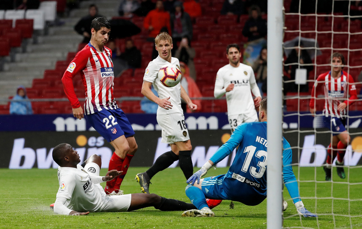 Alvaro Morata put Atletico ahead on a rain-swept evening in the ninth minute by knocking a cross in from close range on the volley but Valencia equalised in the 36th through former Atletico forward Kevin Gameiro.
