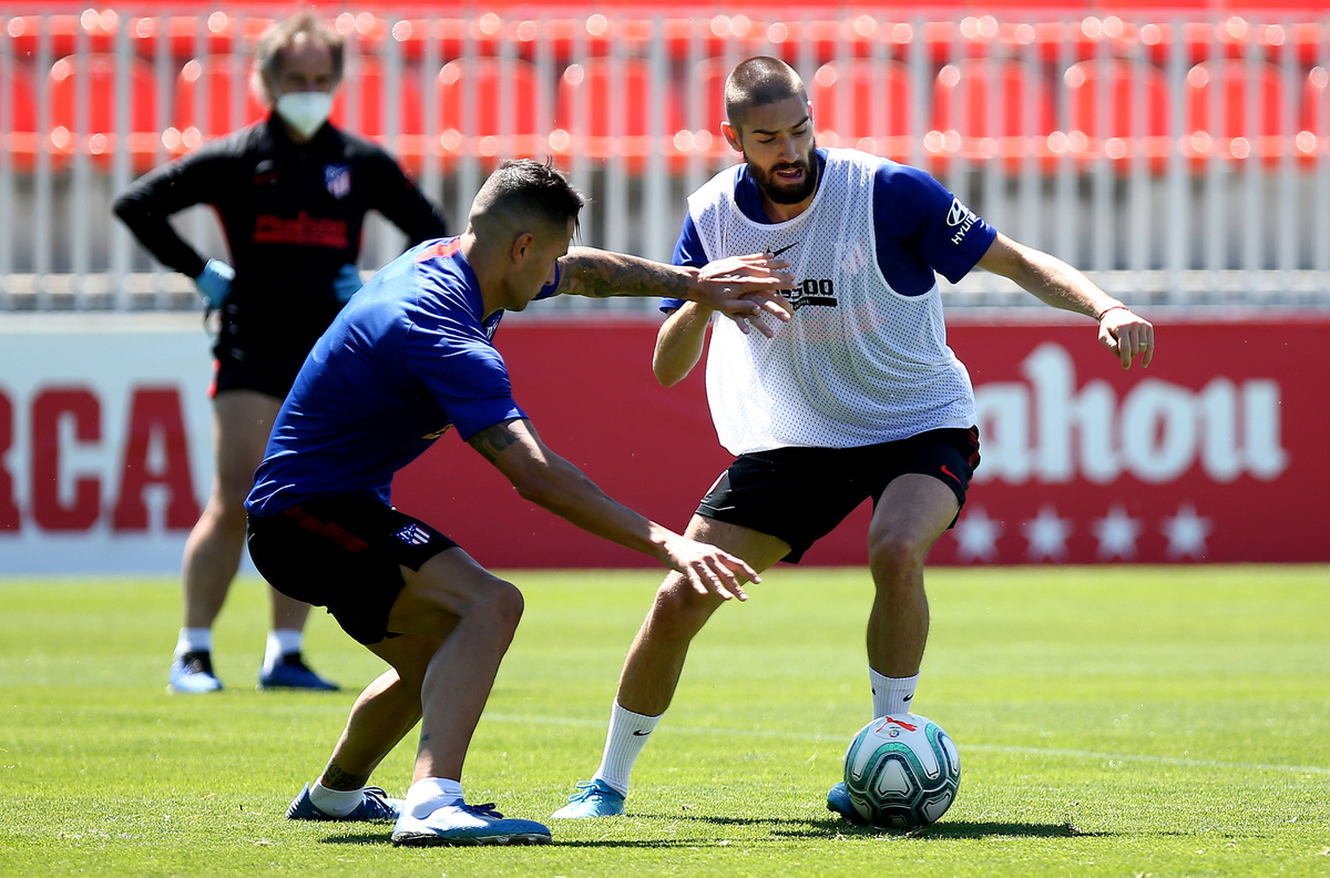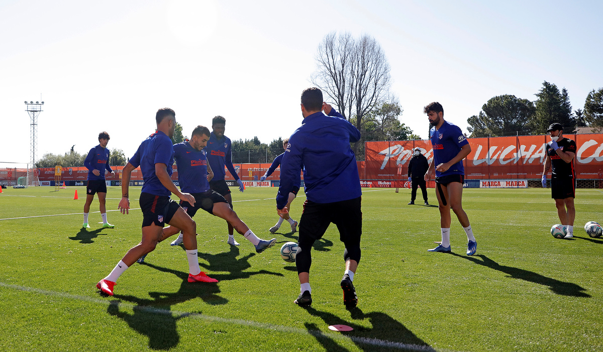 Atletico Madrid players during training at Ciudad Deportiva Wanda Atletico de Madrid training ground, following the outbreak of the coronavirus disease (COVID-19), Madrid, Spain, May 18, 2020. atleticodemadrid.com/Handout via REUTERS Atletico Madrid's Stefan Savic during training at Ciudad Deportiva Wanda Atletico de Madrid training ground, following the outbreak of the coronavirus disease (COVID-19), Madrid, Spain, May 18, 2020. atleticodemadrid.com/Handout via REUTERS. Atletico Madrid's Sime Vrsaljko players during training at Ciudad Deportiva Wanda Atletico de Madrid training ground, following the outbreak of the coronavirus disease (COVID-19), Madrid, Spain, May 18, 2020. atleticodemadrid.com/Handout via REUTERS Atletico Madrid's Jan Oblak during training at Ciudad Deportiva Wanda Atletico de Madrid training ground, following the outbreak of the coronavirus disease (COVID-19), Madrid, Spain, May 18, 2020. atleticodemadrid.com/Handout via REUTERS Atletico Madrid's Alvaro Morata and Marcos Llorente during training at Ciudad Deportiva Wanda Atletico de Madrid training ground, following the outbreak of the coronavirus disease (COVID-19), Madrid, Spain, May 18, 2020. atleticodemadrid.com/Handout via REUTERS Atletico Madrid's Jan Oblak during training at Ciudad Deportiva Wanda Atletico de Madrid training ground, following the outbreak of the coronavirus disease (COVID-19), Madrid, Spain, May 18, 2020. atleticodemadrid.com/Handout via REUTERS.