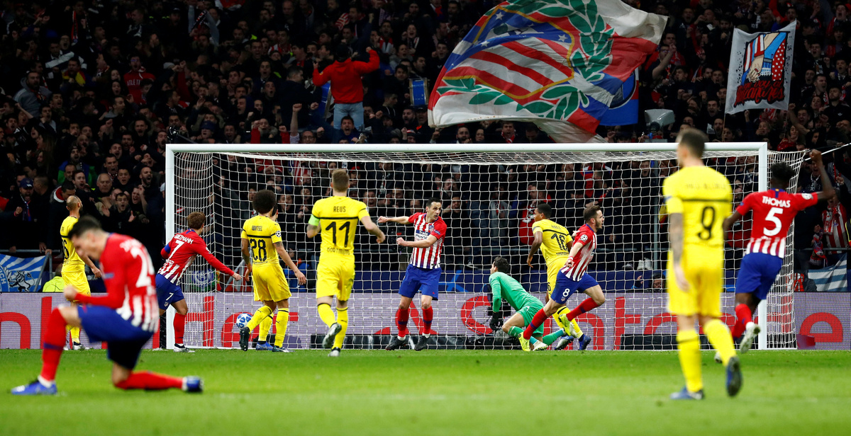 Dortmund, the last German team to win a Champions League game at Atletico in their title-winning 1996-97 season, were in disarray and Saul went close to a second goal in the 41st minute, firing narrowly wide.