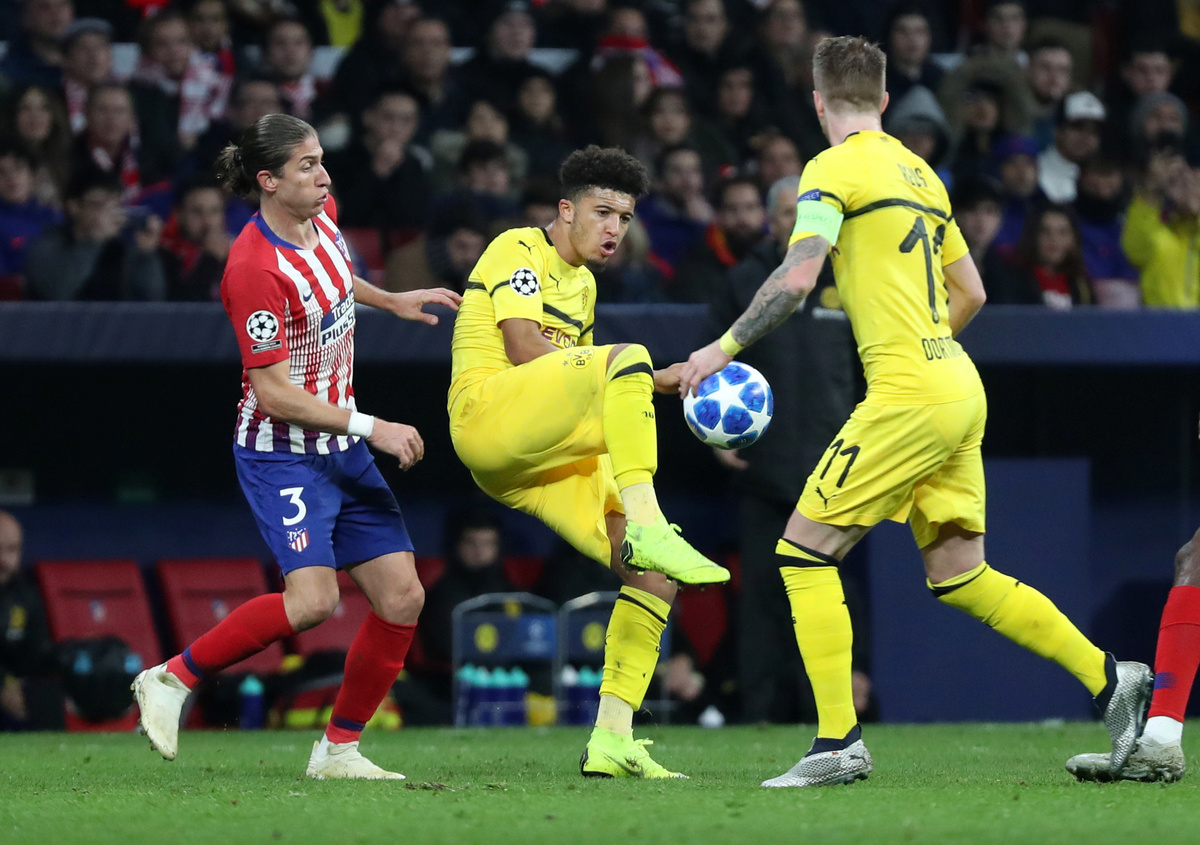 Soccer Football - Champions League - Group Stage - Group A - Atletico Madrid v Borussia Dortmund - Wanda Metropolitano, Madrid, Spain - November 6, 2018 Borussia Dortmund's Jadon Sancho in action with Atletico Madrid's Filipe Luis REUTERS/Susana VeraSoccer Football - Champions League - Group Stage - Group A - Atletico Madrid v Borussia Dortmund - Wanda Metropolitano, Madrid, Spain - November 6, 2018 Atletico Madrid's Saul Niguez celebrates scoring their first goal REUTERS/Juan Medina Soccer Football - Champions League - Group Stage - Group A - Atletico Madrid v Borussia Dortmund - Wanda Metropolitano, Madrid, Spain - November 6, 2018 Atletico Madrid's Antoine Griezmann celebrates scoring their second goal REUTERS/Susana VeraSoccer Football - Champions League - Group Stage - Group A - Atletico Madrid v Borussia Dortmund - Wanda Metropolitano, Madrid, Spain - November 6, 2018 Atletico Madrid's Saul Niguez celebrates scoring their first goal with Angel Correa REUTERS/Juan MedinaSoccer Football - Champions League - Group Stage - Group A - Atletico Madrid v Borussia Dortmund - Wanda Metropolitano, Madrid, Spain - November 6, 2018 Atletico Madrid's Saul Niguez celebrates scoring their first goal REUTERS/Juan MedinaSoccer Football - Champions League - Group Stage - Group A - Atletico Madrid v Borussia Dortmund - Wanda Metropolitano, Madrid, Spain - November 6, 2018 Borussia Dortmund's Roman Burki in action REUTERS/Juan MedinaSoccer Football - Champions League - Group Stage - Group A - Atletico Madrid v Borussia Dortmund - Wanda Metropolitano, Madrid, Spain - November 6, 2018 Borussia Dortmund's Marco Reus in action with Atletico Madrid's Rodri REUTERS/Juan Medina