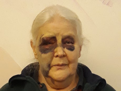 They ran off, leaving her distraught on the floor with an injured knee and severe bruising around her eyes.