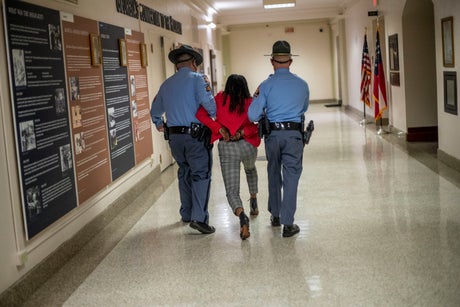 The law against disrupting a legislative meeting was challenged as unconstitutional in a lawsuit filed last year after people including Nikema Williams, then a state senator and now a U.S. representative, were arrested at the Capitol while protesting election results in 2018. All charges were dismissed in 2019.