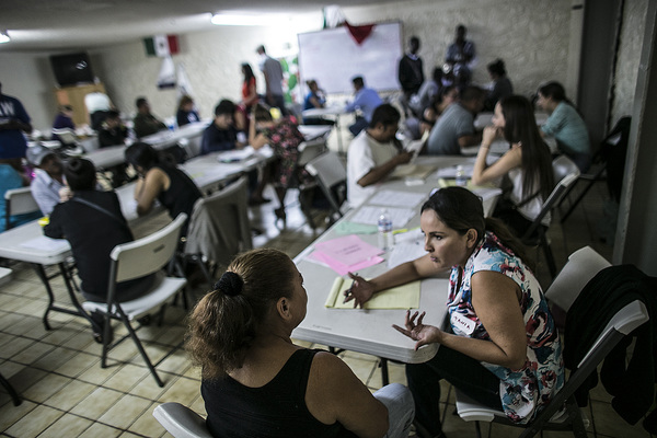 Inside the migrant shelter, hundreds of Mexicans, Central Americans and Haitians crowded, desperate for a way to cross into the U.S. _ legally.