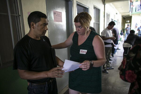 Through a Spanish-language interpreter, volunteer and Laguna Niguel resident Iris Anderson told Jhanny Rolando Seoanes Chavez that if she were to pass a "credible fear" interview with immigration officials, she would probably have to remain in a detention facility for months.