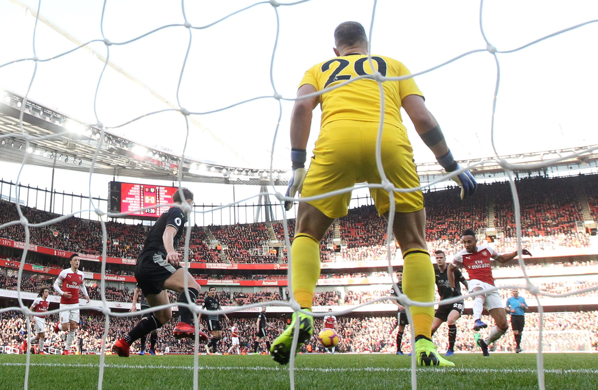 The Gabon forward gave Arsenal the lead in the 14th minute, knocking in a pass from Sead Kolasinac after a classy ball from Mesut Ozil. He then smashed high into the net in the 48th to complete an impressive counter-attack from Unai Emery's side.