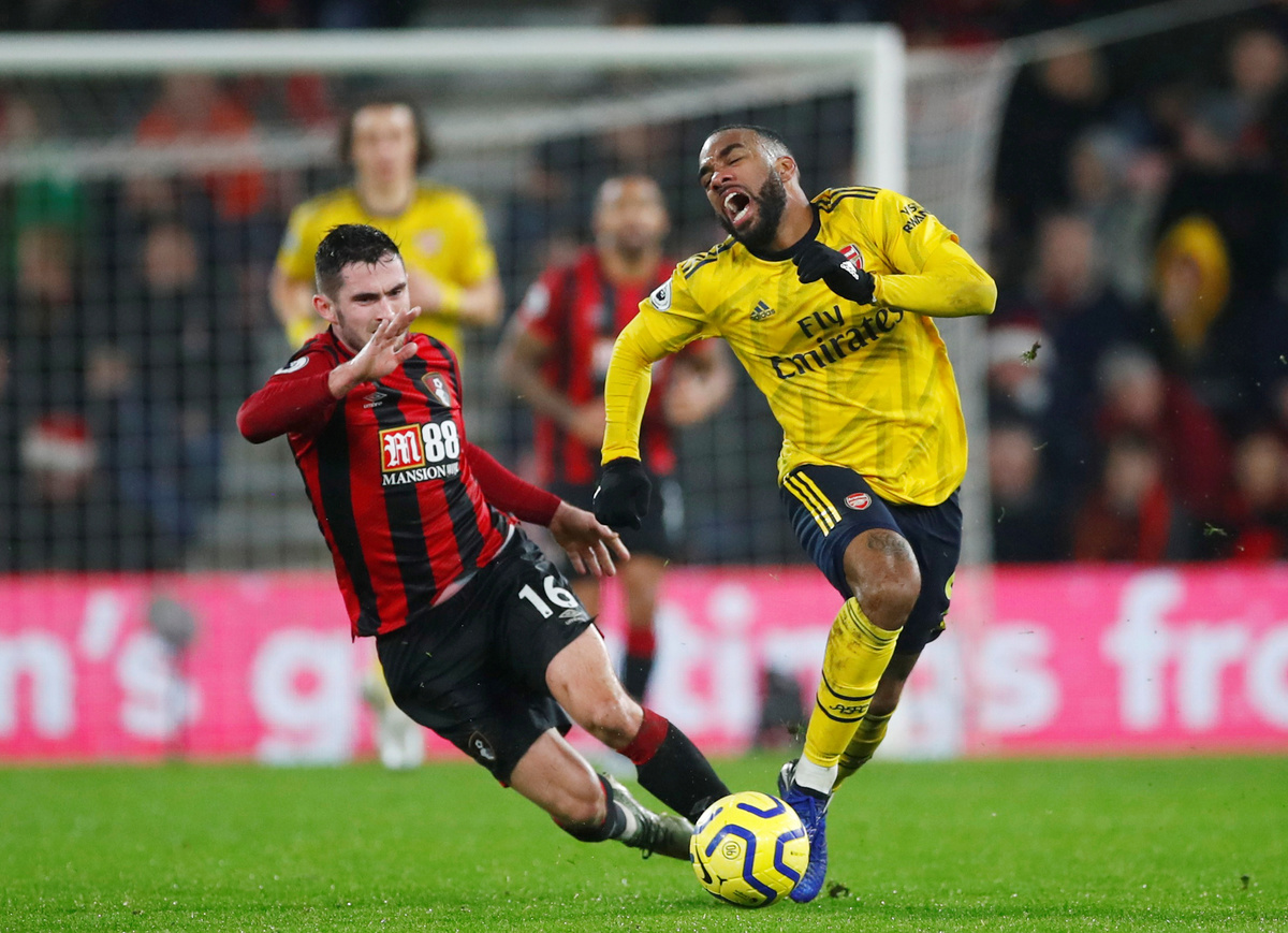 Soccer Football - Premier League - AFC Bournemouth v Arsenal - Vitality Stadium, Bournemouth, Britain - December 26, 2019 Arsenal's Alexandre Lacazette in action with Bournemouth's Lewis Cook REUTERS/Eddie Keogh
