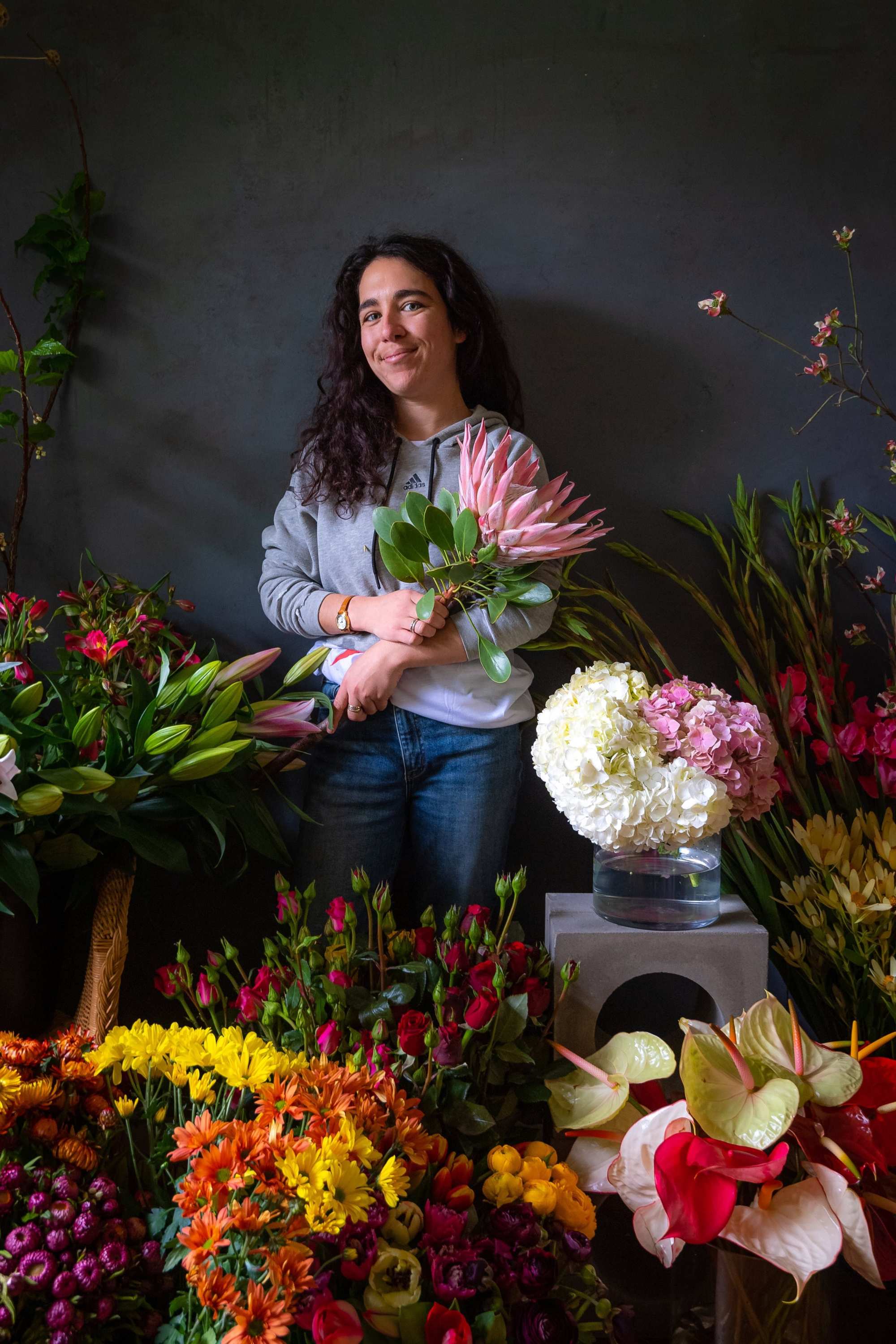 The work towards one day in May began late last year when she and her father planted the first of three crops of lisianthus, sunflowers, carnations, gerberas, snapdragons, celosia, daisies, fragrant stocks, native flowers and foliage.