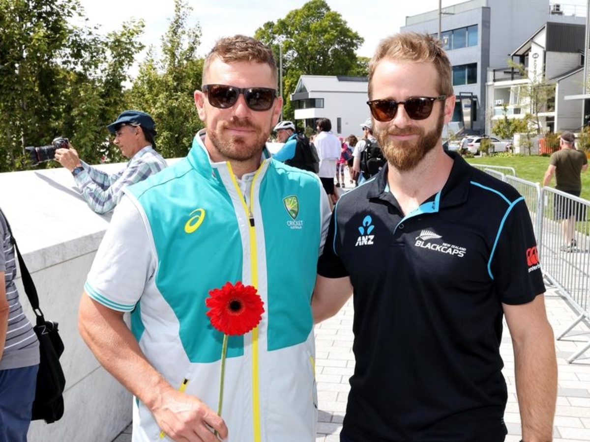 Captains Aaron Finch and Kane Williamson have set aside sporting rivalries to place a wreath on the 10th anniversary of the Christchurch earthquake.