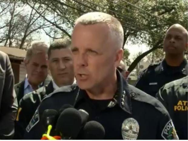 Austin Police Chief Brian Manley confirmed to reporters that the third blast — which followed just hours after an earlier deadly explosion Monday — is suspected of being connected to the recent explosions.