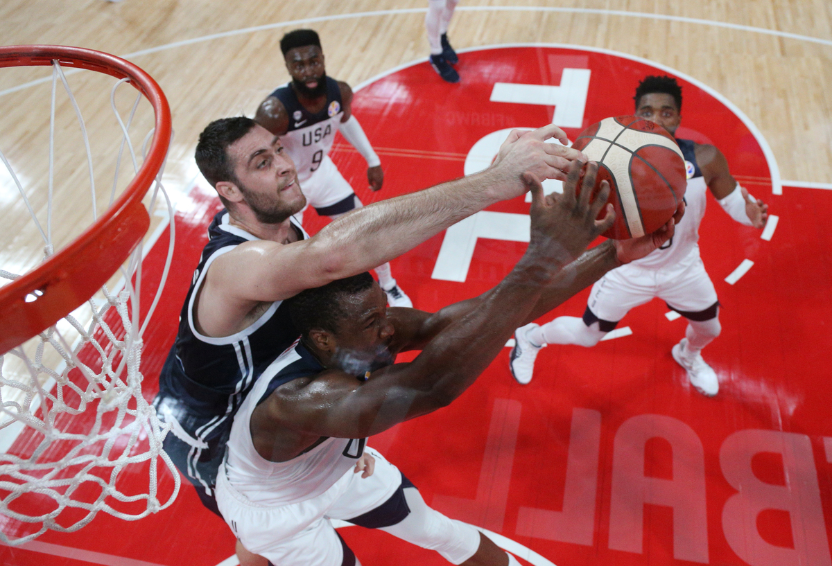 The U.S. had six players in double scoring digits, with Kemba Walker leading the way on 17 points. Harrison Barnes got 15 and Myles Turner added 14 while Jaylen Brown, Joe Harris and Donovan Mitchell chipped in with 11 each.