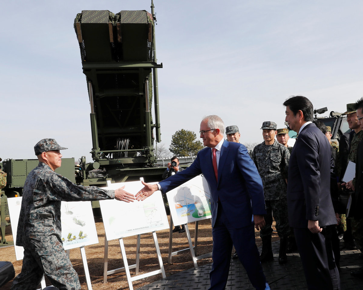 Turnbull and Abe later promised to work together to bolster security ties and they condemned North Korea's nuclear and ballistic missile programmes as "flagrant violations" of U.N. Security Council resolutions.
