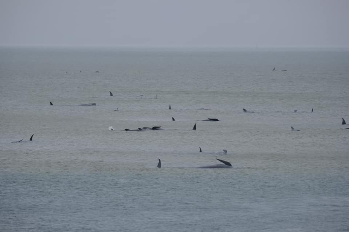 Scientists do not know why whales, which travel together in pods, sometimes beach themselves but they are known to follow a leader, as well as gather around an injured or distressed whale.