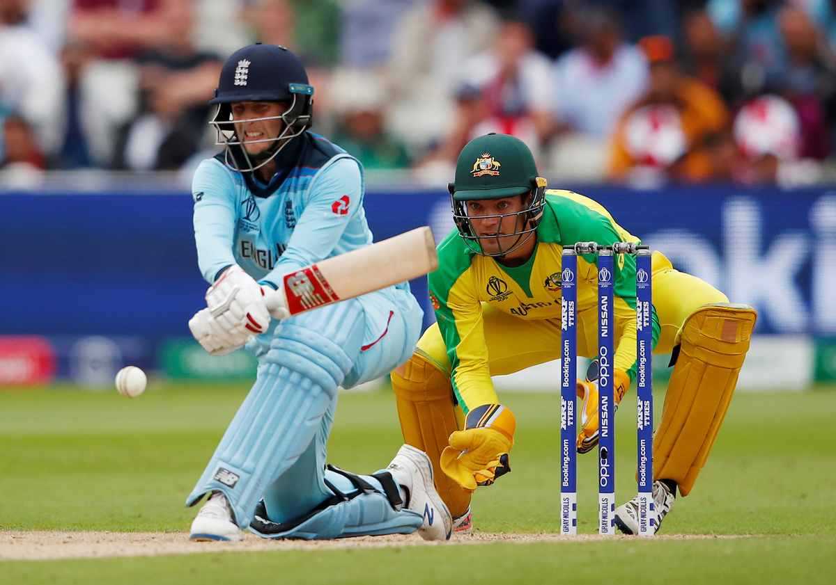 Cricket - ICC Cricket World Cup Semi Final - Australia v England - Edgbaston, Birmingham, Britain - July 11, 2019 England's Joe Root and Australia's Alex Carey in action Action Images via Reuters/Andrew Boyers