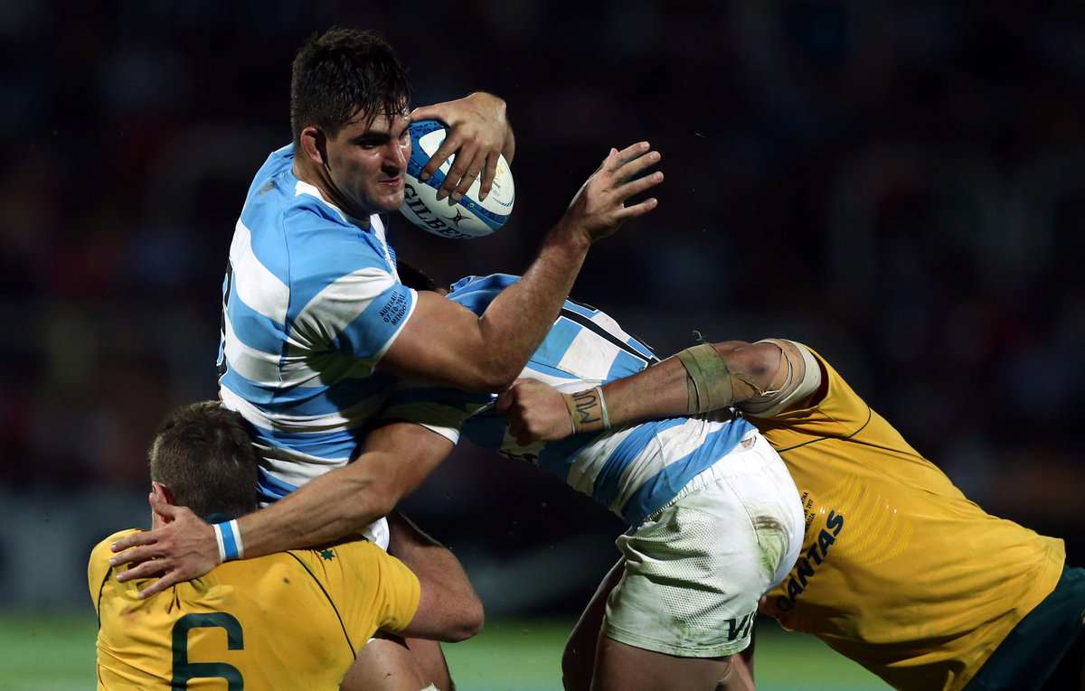 Rugby Union - Championship - Argentina Pumas v Australia Wallabies - Malvinas Argentinas stadium, Mendoza, Argentina - October 7, 2017 - Argentina's Pablo Matera is tackled by Australia's Jack Dempsey. REUTERS/Marcos BrindicciRugby Union - Championship - Argentina Pumas v Australia Wallabies - Malvinas Argentinas stadium, Mendoza, Argentina - October 7, 2017 - Argentina's Jeronimo De La Fuente (L) is embraced by teammates as they celebrate after he scored a try. REUTERS/Marcos BrindicciRugby Union - Championship - Argentina Pumas v Australia Wallabies - Malvinas Argentinas stadium, Mendoza, Argentina - October 7, 2017 - Argentina's Martin Landajo and Juan Martin Hernandez react after receiving a try. REUTERS/Marcos BrindicciRugby Union - Championship - Argentina Pumas v Australia Wallabies - Malvinas Argentinas stadium, Mendoza, Argentina - October 7, 2017 - Australia's Marika Koroibete runs to score a try under pressure from Argentina's Javier Ortega Desio. REUTERS/Marcos BrindicciRugby Union - Championship - Argentina Pumas v Australia Wallabies - Malvinas Argentinas stadium, Mendoza, Argentina - October 7, 2017 - Australia's head coach Michael Cheika kicks a ball before the match. REUTERS/Marcos BrindicciRugby Union - Championship - Argentina Pumas v Australia Wallabies - Malvinas Argentinas stadium, Mendoza, Argentina - October 7, 2017 - Australia's Reece Hodge scores a try as Argentina's Emiliano Boffelli reacts. REUTERS/Marcos Brindicci