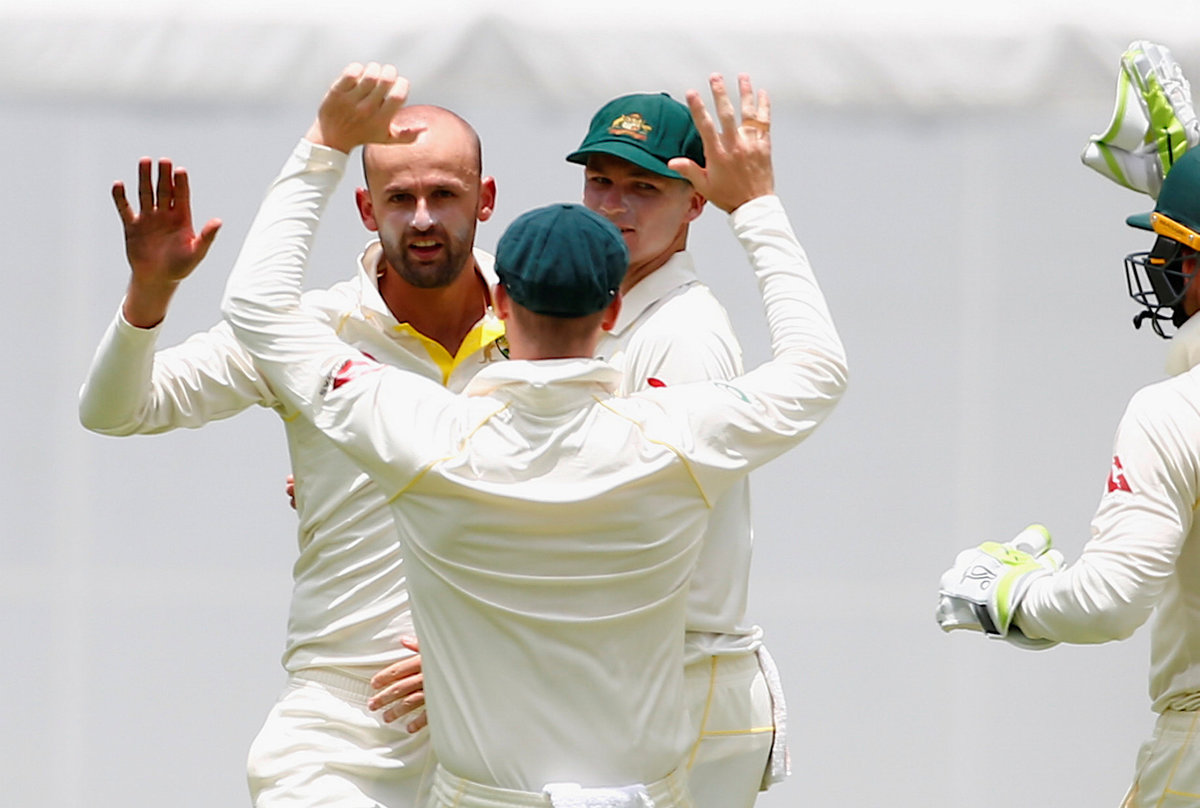 Denied a wicket on day one when recalled wicketkeeper Tim Paine grassed a nick from Vince, spinner Lyon trapped Moeen lbw for 38 and bowled Chris Woakes for a duck in quick succession.