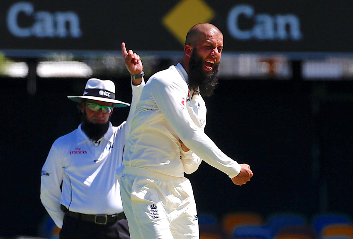 Cricket - Ashes test match - Australia v England - GABBA Ground, Brisbane, Australia, November 24, 2017. England's Moeen Ali celebrates appealing succesfully for LBW to dismiss Australia's Usman Khawaja during the second day of the first Ashes cricket test match. REUTERS/David Gray
