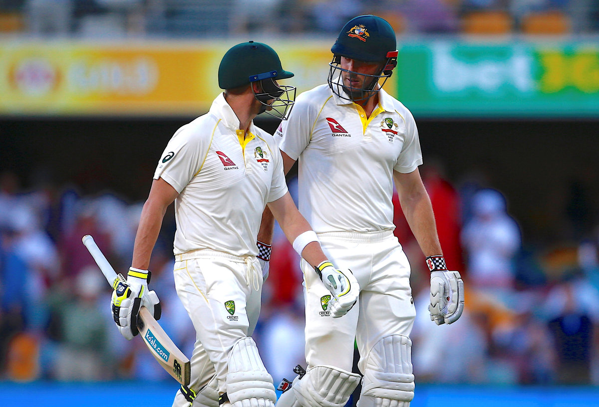 Cricket - Ashes test match - Australia v England - GABBA Ground, Brisbane, Australia, November 24, 2017. Australia's captain Steve Smith talks with Shaun Marsh as they walk off the field at the end of play on the second day of the first Ashes cricket test match. REUTERS/David Gray