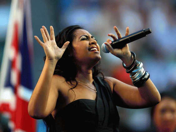 Jessica Mauboy, a 26-year-old Aboriginal pop singer, opened the day of celebrations with a rendition of the Australian national anthem on Sydney Harbour Bridge in a New South Wales indigenous dialect, as the Aboriginal and Australian flag were raised together.