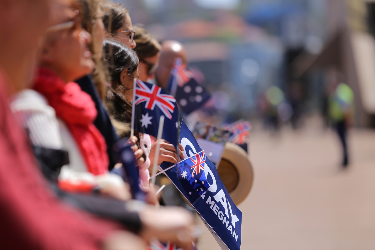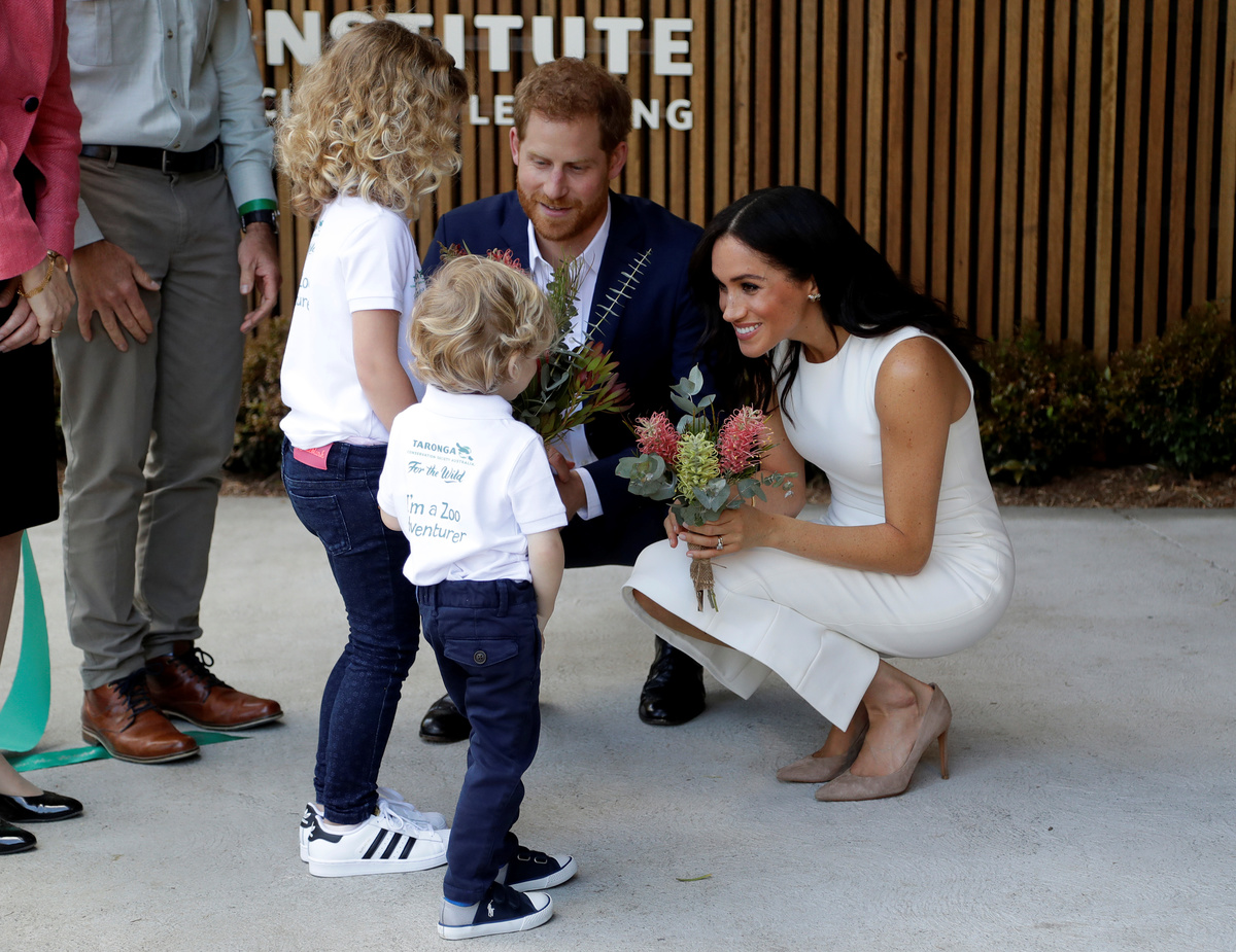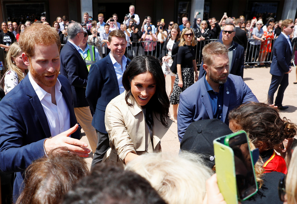 Britain's Prince Harry and wife Meghan, Duchess of Sussex speak to members of the public as they receive a card during a visit at the Sydney Opera House in Sydney, Australia October 16, 2018. REUTERS/Phil NobleBritain's Prince Harry and Meghan, Duchess of Sussex receive bouquets from Finley Blue and Dasha Gallagher at Taronga Zoo in Sydney, Australia, Tuesday, Oct. 16, 2018. Kirsty Wigglesworth/Pool via REUTERSBritain's Prince Harry and wife Meghan, Duchess of Sussex pose with Australia's Governor General Peter Cosgrove and wife Lynne Cosgrove at Admiralty House during their visit in Sydney, Australia October 16, 2018. REUTERS/Phil Noble/PoolBritain's Prince Harry and wife Meghan, Duchess of Sussex greet members of the public during a visit at the Sydney Opera House in Sydney, Australia October 16, 2018. REUTERS/Phil NobleBritain's Prince Harry and wife Meghan, Duchess of Sussex are welcomed by Australia's Governor General Peter Cosgrove and his wife Lynne Cosgrove at Admiralty House during their visit in Sydney, Australia October 16, 2018. REUTERS/Phil Noble/PoolCrowds wait for the arrival of Britain's Prince Harry and Meghan, Duchess of Sussex, at the Sydney Opera House in central Sydney, Australia, October 16, 2018. REUTERS/Steven SaphoreBritain's Prince Harry and wife Meghan, Duchess of Sussex pose with Australia's Governor General Peter Cosgrove and his wife Lynne Cosgrove at Admiralty House during their visit in Sydney, Australia October 16, 2018. REUTERS/Phil Noble/PoolBritain's Prince Harry and wife Meghan, Duchess of Sussex walk with Australia's Governor General Peter Cosgrove and his wife Lynne Cosgrove at Admiralty House during their visit in Sydney, Australia October 16, 2018. REUTERS/Phil Noble/PoolBritain's Prince Harry and wife Meghan, Duchess of Sussex look at bush hats with Australia's Governor General Peter Cosgrove and his wife Lynne Cosgrove at Admiralty House during their visit in Sydney, Australia October 16, 2018. REUTERS/Phil Noble/PoolBritain's Prince Harry and Australia's Governor General Peter Cosgrove at Admiralty House in Sydney, Australia October 16, 2018. REUTERS/Phil Noble/PoolBritain's Prince Harry and wife Meghan, Duchess of Sussex look at bush hats with Australia's Governor General Peter Cosgrove at Admiralty House during their visit in Sydney, Australia October 16, 2018. REUTERS/Phil Noble/PoolBritain's Meghan, Duchess of Sussex arrives at Admiralty House in Sydney, Australia October 16, 2018. REUTERS/Phil Noble/Pool