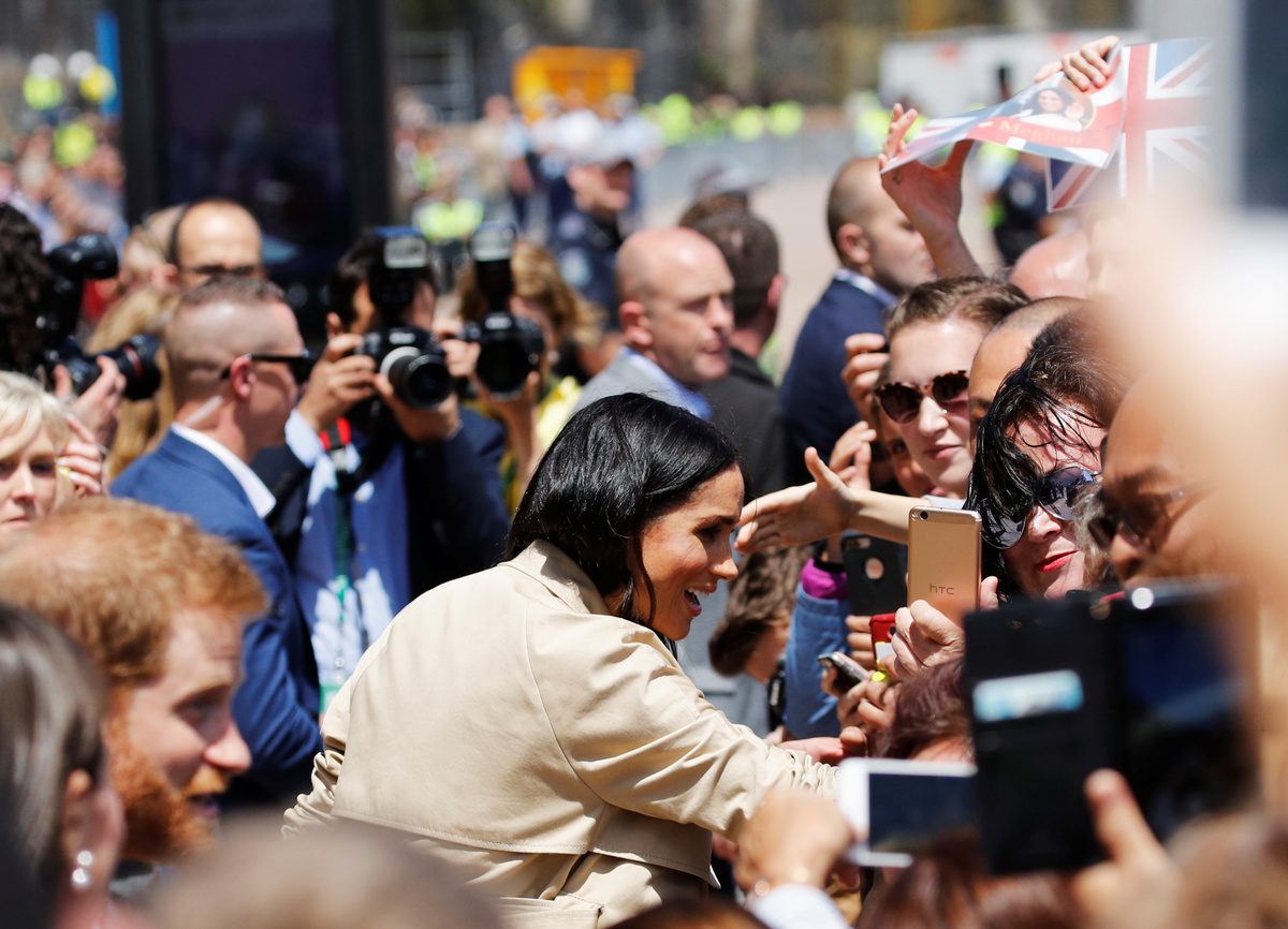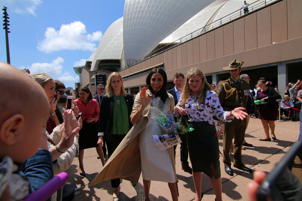 Britain's Meghan, Duchess of Sussex, greets the crowd at the Sydney Opera House in central Sydney, Australia, October 16, 2018. REUTERS/Steven Saphore