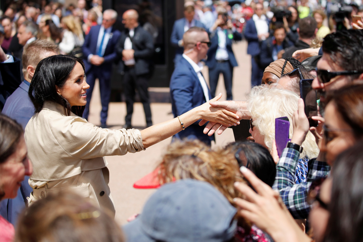 Britain's Meghan, Duchess of Sussex shakes hands with a member of the public during a visit at the Sydney Opera House in Sydney, Australia October 16, 2018. REUTERS/Phil Noble