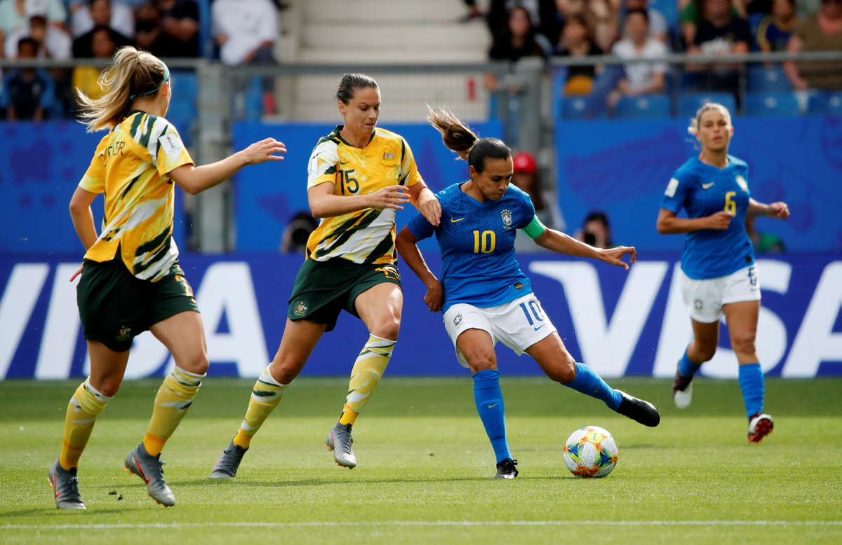 MONTPELLIER, France (Reuters) - Australia came from two goals down to defeat Brazil 3-2 in the women's World Cup on Thursday, as Monica's own goal overshadowed a milestone strike for team mate Marta as the South Americans suffered their first group stage defeat in 24 years.